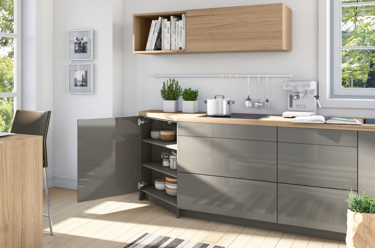 Uchwyty meblowe są zupełnie niepotrzebne do komfortowego otwierania frontów. A to dlatego, że wiele zadań przejęły na siebie… zawiasy. To one – doposażone w system Push to open Silent – otwierają drzwiczki po ich lekkim naciśnięciu, a do tego zadbają, by delikatnie się domykały i nie trzaskały o meble przy zamykaniu. Taki system można stosować w meblach kuchennych, łazienkowych czy pokojowych, zarówno tych robionych na zamówienie, jak i kupionych w sklepie.